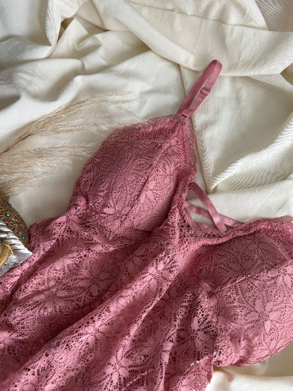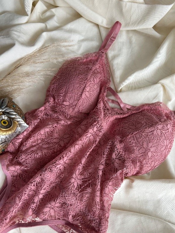 Body colales de encaje elástizado. Cuenta con avíos metálicos y ajuste en parte baja con gancho de 3 posiciones. El corpiño tiene incorporado taza blanda.La espalda es abierta en la parte superiores.