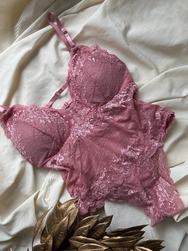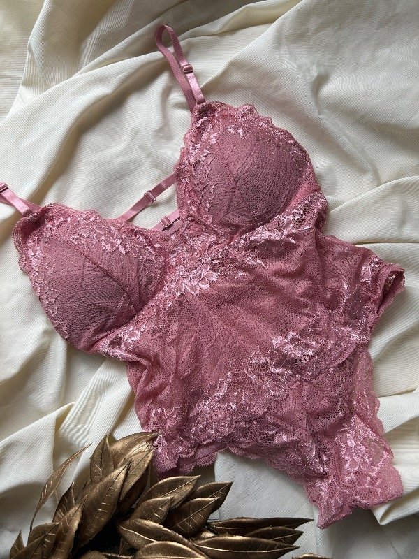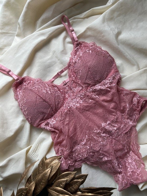 Body colales de encaje elástizado. Cuenta con avíos metálicos y ajuste en parte baja con gancho de 3 posiciones. El corpiño tiene incorporado taza blanda.La espalda es abierta en la parte superiores.