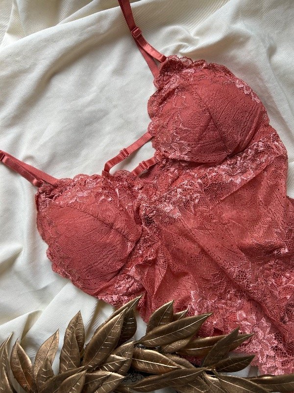Body colales de encaje elástizado. Cuenta con avíos metálicos y ajuste en parte baja con gancho de 3 posiciones. El corpiño tiene incorporado taza blanda.La espalda es abierta en la parte superiores.