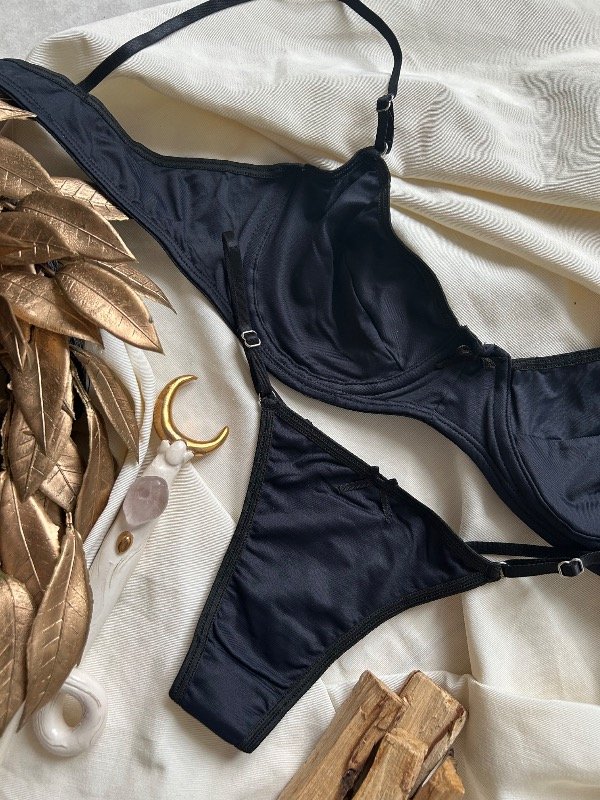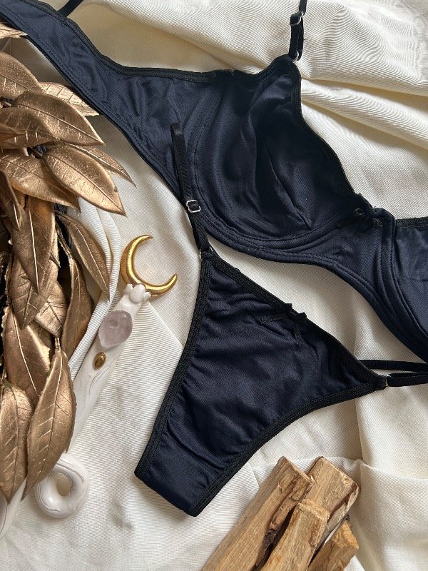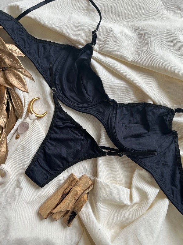 Conjunto de microfibra Breteles no desmontables, avíos metálicos.