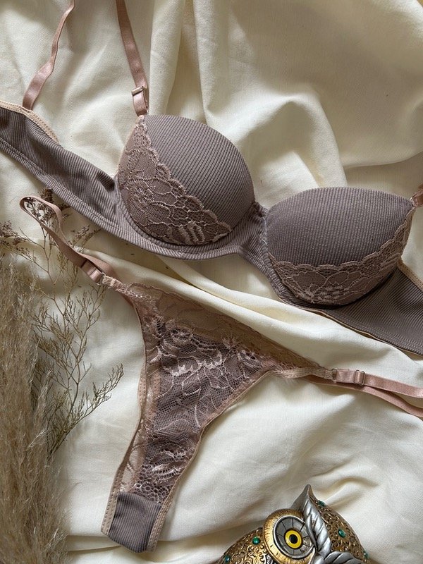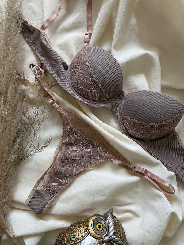 Conjunto push up de Morley y encaje , ajuste en espalda con gancho de dos posiciones, bretéeles no desmontables