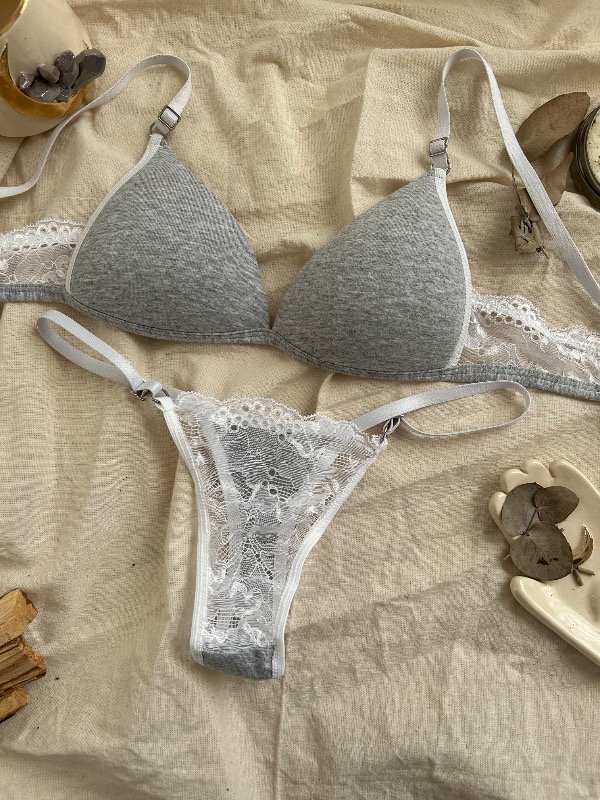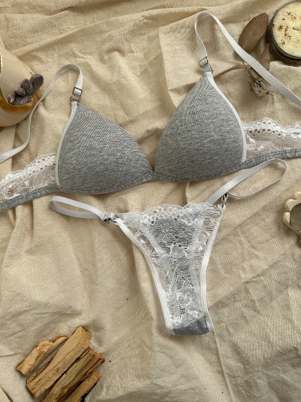 Conjunto de algodón con puntilla , taza soft, ajuste en espalda con gancho de dos posiciones, bretéeles no desmontables