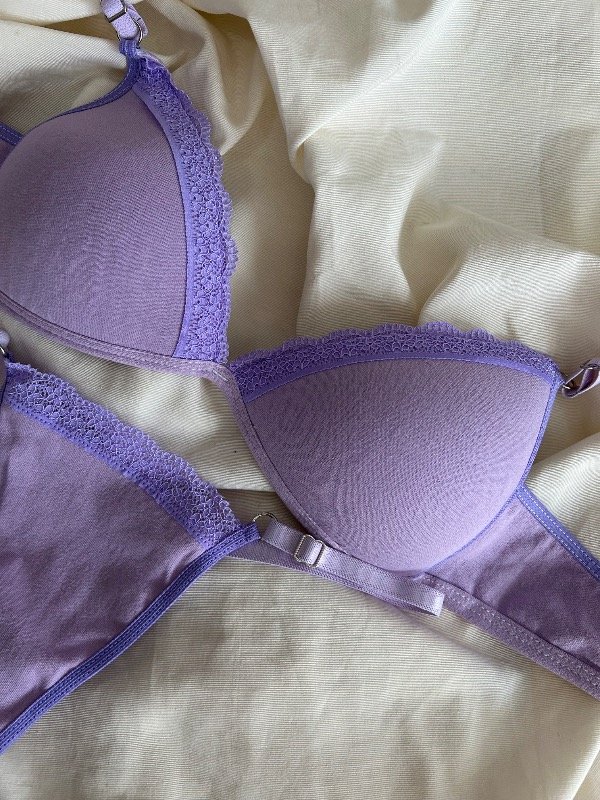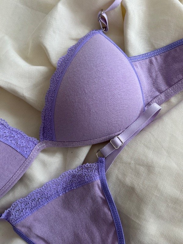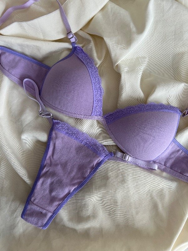 Conjunto con tela algodon con puntilla taza soft Breteles regulables (no desmontables) y bombi less con misma combinación de telas que el corpińo