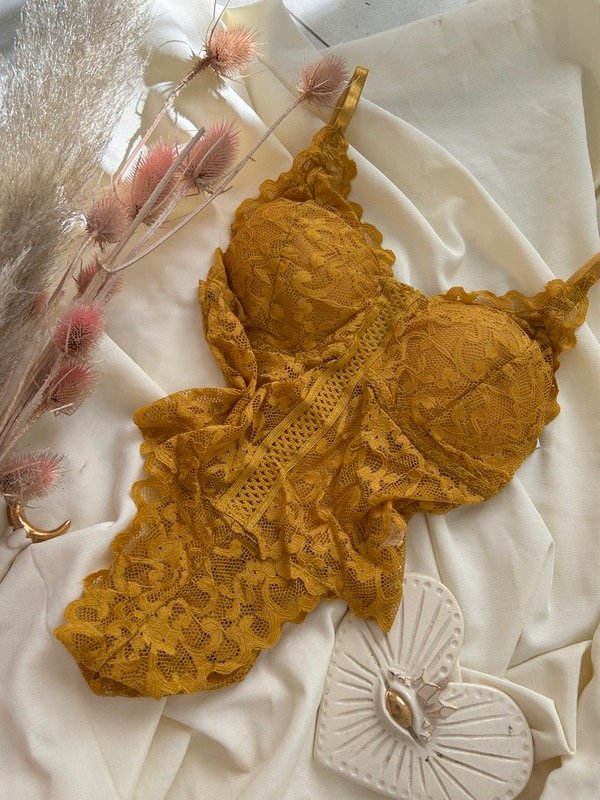 Body colales de encaje elástizqdo. Cuenta con avíos metálicos y ajuste en parte baja con gancho de 3 posiciones. El corpiño tiene incorporado taza blanda.
