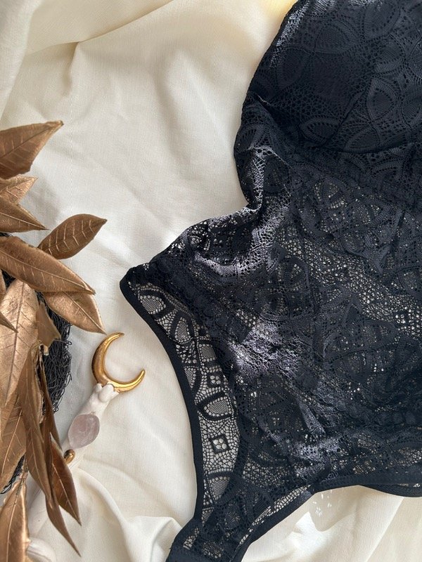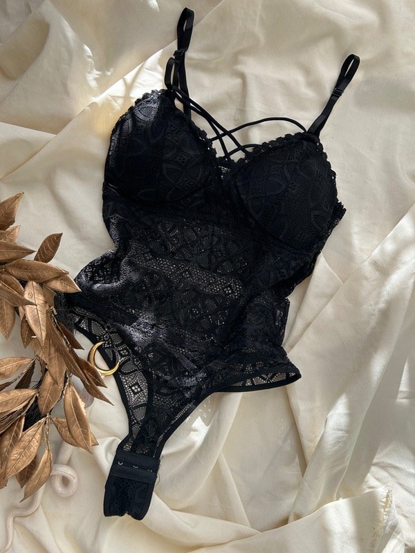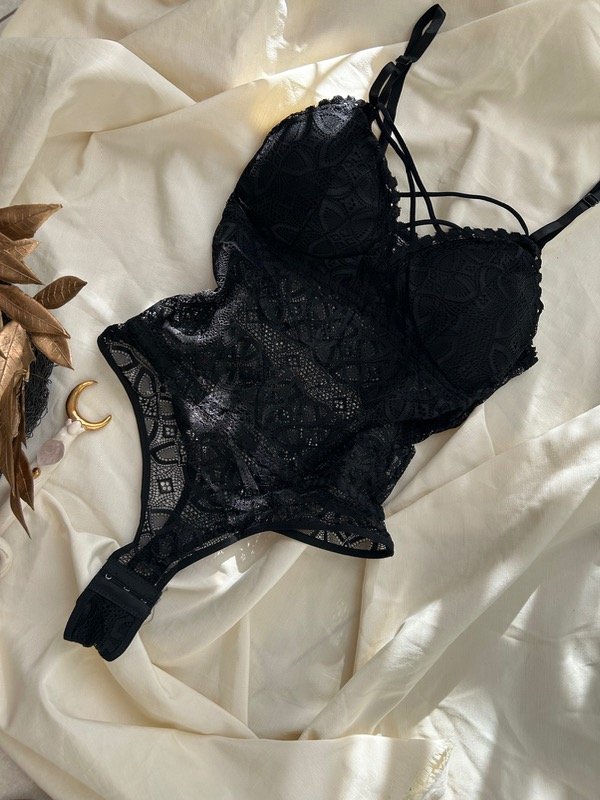 Body colales de encaje eladtizado. Cuenta con avíos metálicos y ajuste en parte baja con gancho de 3 posiciones. El corpiño tiene incorporado taza blanda.