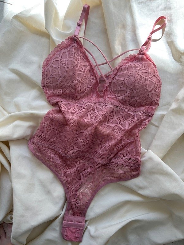 Body colales de encaje elástizqdo. Cuenta con avíos metálicos y ajuste en parte baja con gancho de 3 posiciones. El corpiño tiene incorporado taza blanda.