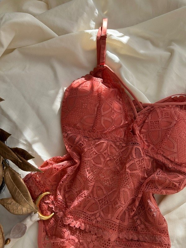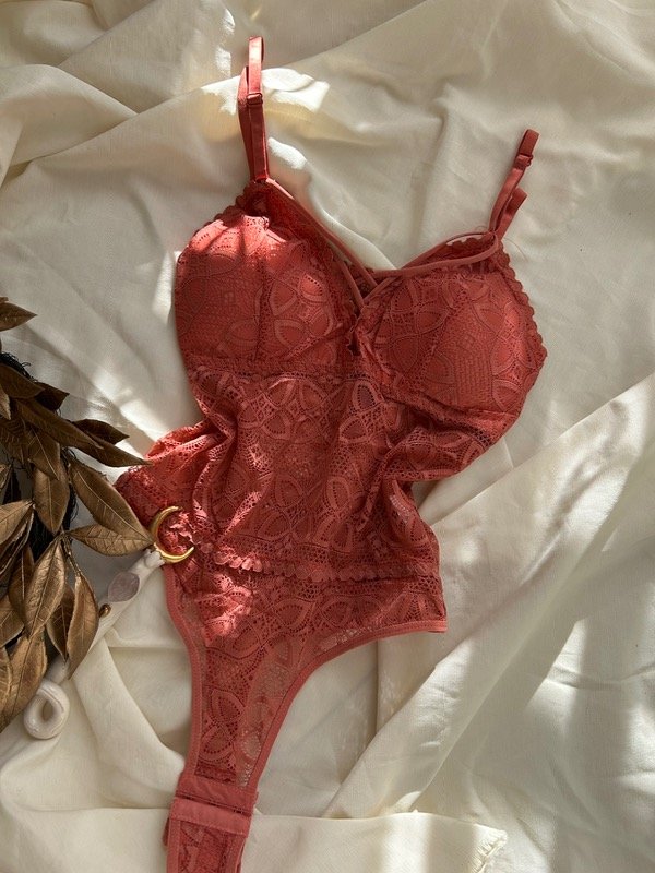 Body colales de encaje elástizqdo. Cuenta con avíos metálicos y ajuste en parte baja con gancho de 3 posiciones. El corpiño tiene incorporado taza blanda.