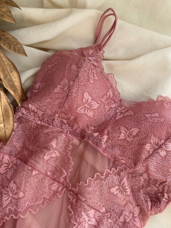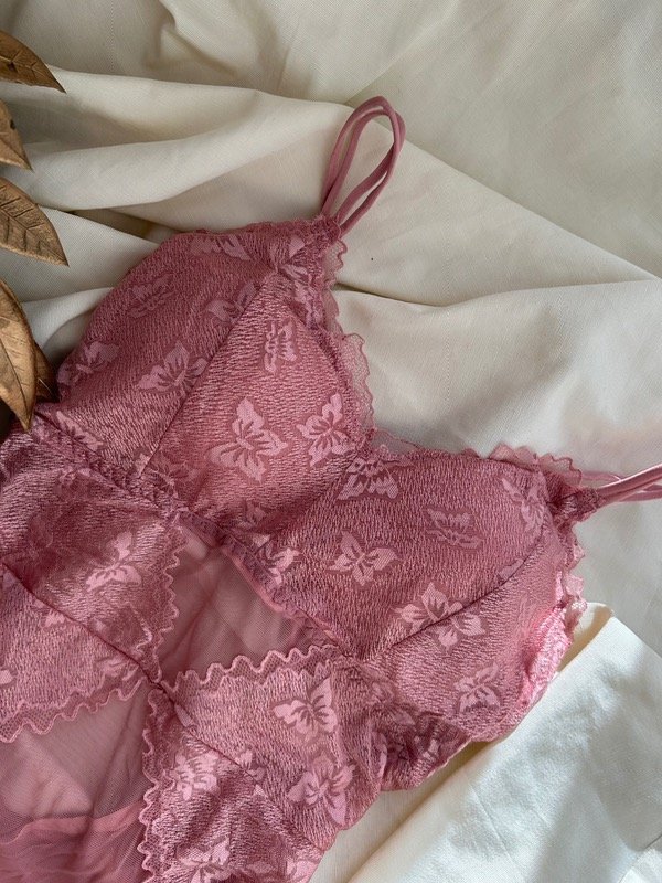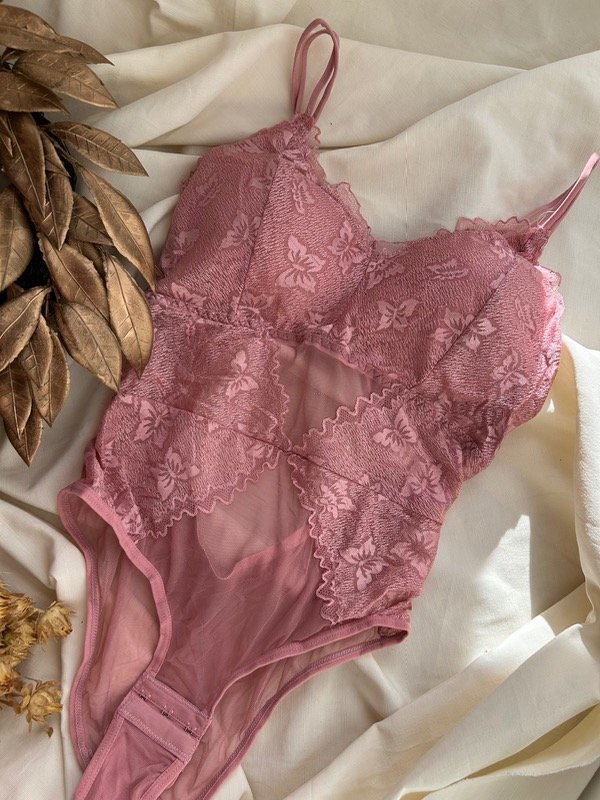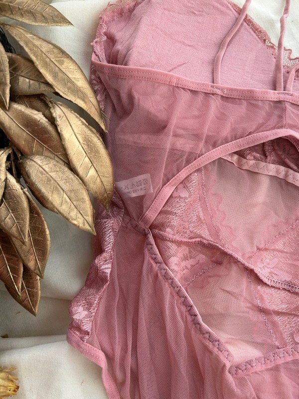 Body vededtina de micro tul con encaje elástizado. Cuenta con avíos metálicos y ajuste en parte baja con gancho de 3 posiciones. El corpiño tiene incorporado taza blanda.La espalda es abierta.
