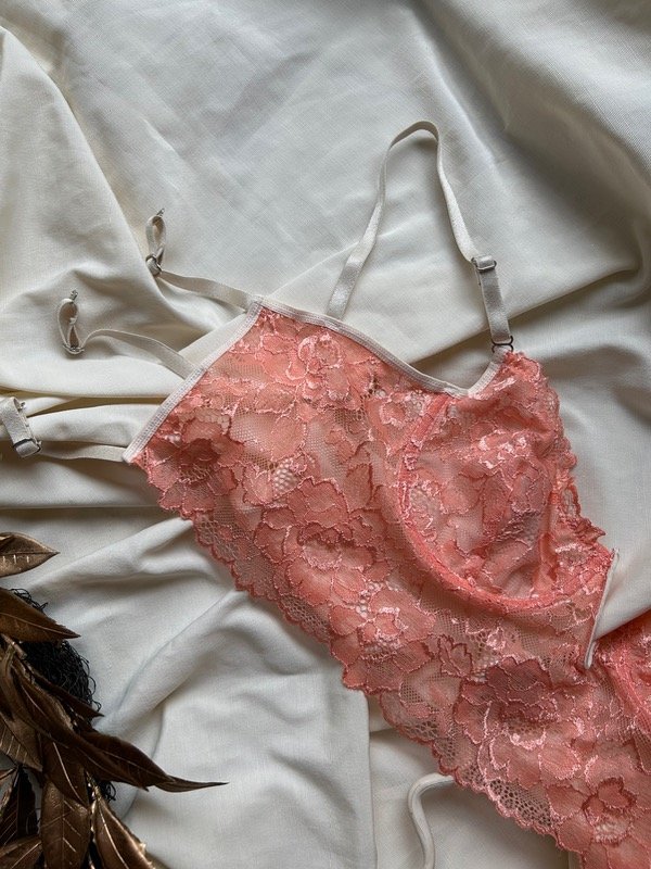 Conjunto de encaje, con aro, y 3 ajustes en la espalda con gancho de una posición regulable cada uno, bretéeles no desmontables