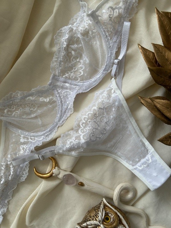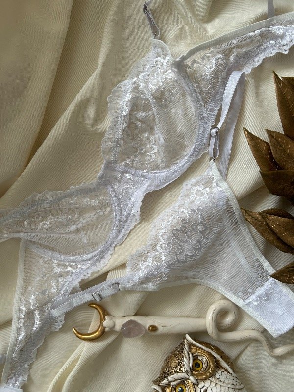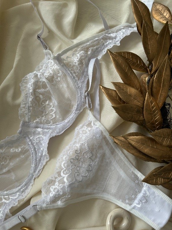 Conjunto de microtul bordado, con aro, y ajuste en la espalda con gancho de dos posiciones, bretéeles no desmontables