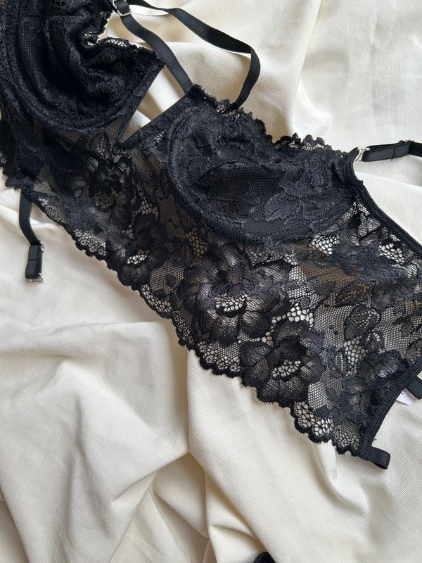Conjunto de encaje, con aro, y 3 ajustes en la espalda con gancho de una posición regulable cada uno, bretéeles no desmontables