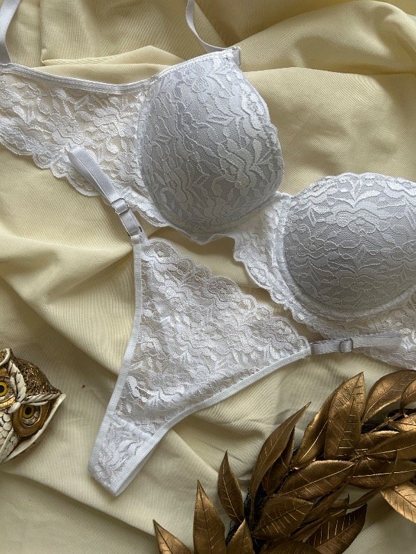 Conjunto push up de encaje, ajuste en espalda con gancho de dos posiciones, bretéeles no desmontables