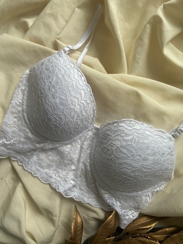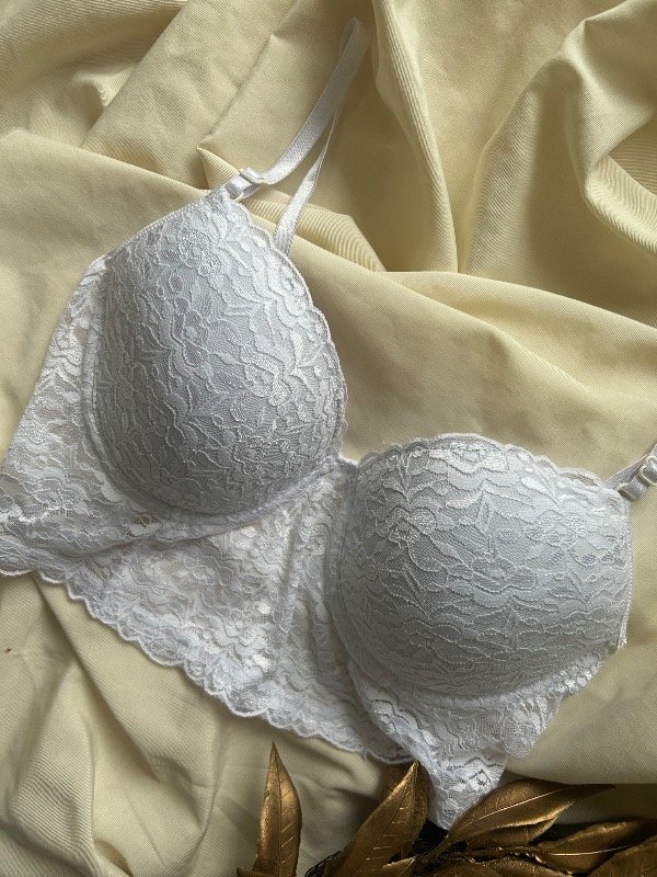 Corpiño push up de encaje, ajuste en espalda con gancho de dos posiciones, bretéeles no desmontables