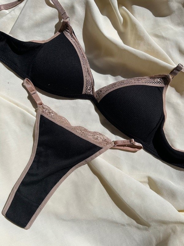 Conjunto de Morley con detalles en puntilla, taza soft, ajuste en espalda con gancho de dos posiciones, bretéeles no desmontables