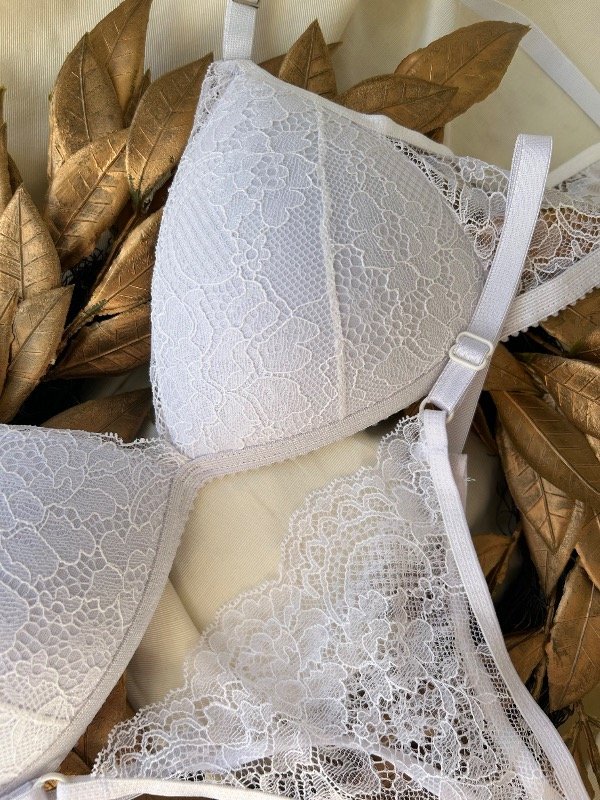 Conjunto taza Soft de encaje, con gancho de dos posiciones, bretéeles no desmontableA, la parte abajo es una colales.