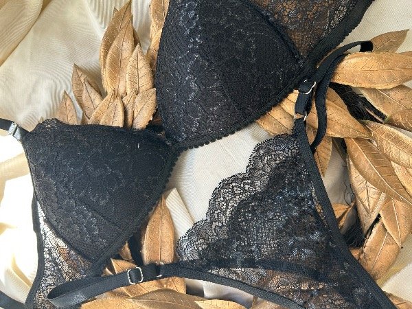 Conjunto taza Soft de encaje, con gancho de dos posiciones, bretéeles no desmontableA, la parte abajo es una colales.
